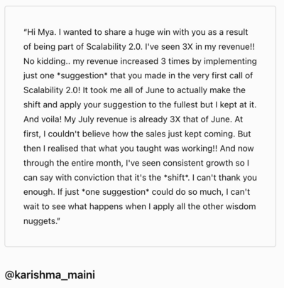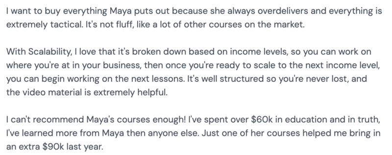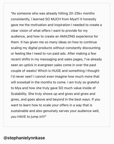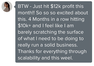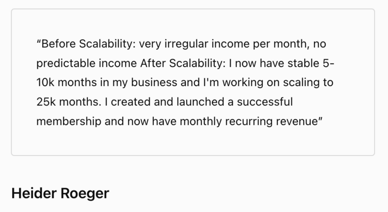 That’s why inside Scalability, you don’t just watch videos and go it alone. You plug in → get clear on your next step → discover a blindspot you didn’t even realize was bottlenecking your income → ask your specific question → implement → rinse → repeat.