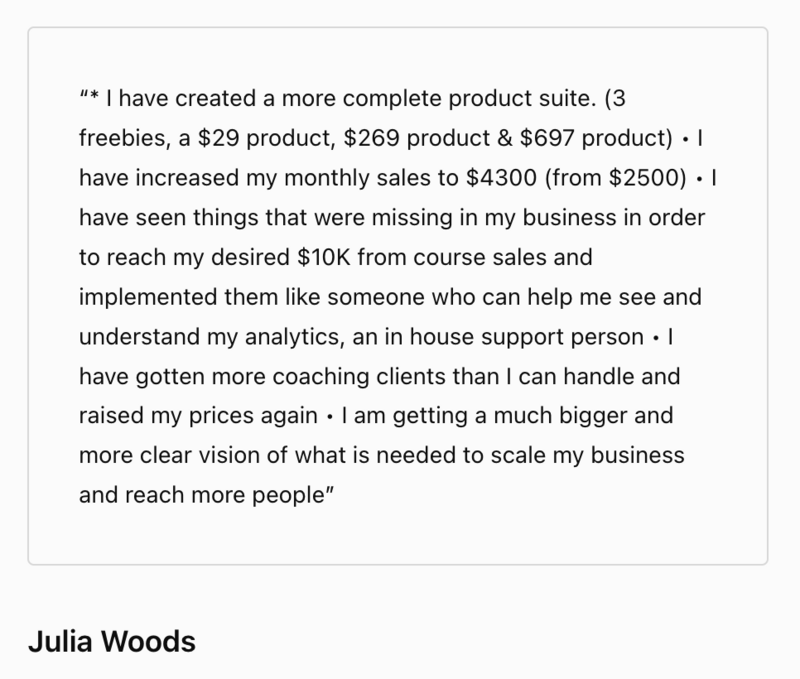 As someone who hasn’t dipped below a $40k month in 3 years, even while restructuring my business (cutting my 1:1 clientele in 1/4 and then later no longer offering 1:1 altogether), growing and birthing my first and second baby, and taking 90 days off from work each year since 2023, I KNOW what it takes to build a sustainable business